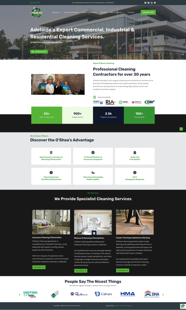 O’Shea’s Organisation, a leading cleaning business in Adelaide, aimed to strengthen its online presence and increase conversions/sales. However, two previous marketing agencies failed to deliver the desired results in SEO, advertising efficiency, and website engagement. This left O’Shea’s searching for a digital marketing partner who could produce real, measurable outcomes.